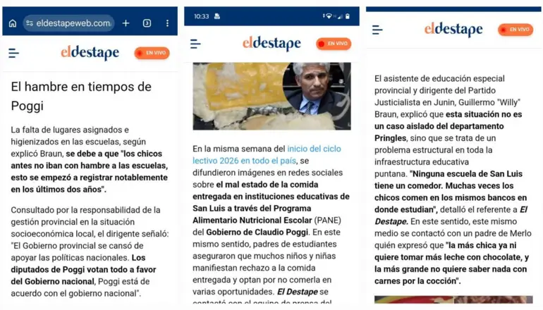 "El Destape" se contactó con un padre de Villa de Merlo para consultar sobre la problemática. El tutor manifestó su preocupación por el rechazo de sus hijas hacia los alimentos: la menor ya no quiso tomar leche con chocolate y la mayor rechazó las carnes debido a las deficientes condiciones de cocción.