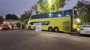 El vehículo pretendió poner un dejo de ironía y vinculación con el contenido del juicio, pues una de las acciones que se le reclama a Ramírez es la compra con sobreprecio de un colectivo para el organismo provincial. No menos curioso resultó la pancarta que el vehículo tenía colgada en uno de sus laterales, firmada por Elpuntano.com, uno de los medios más conspicuos y mejor pagados por el Gobierno de Claudio Poggi.