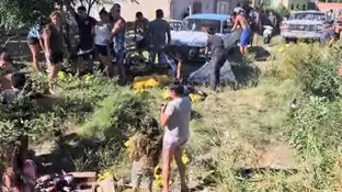 El vuelco de un camión con miles de litros de la bebida despertó la reacción de los vecinos que se organizaron para llevarse las botellas en carretillas, changuitos de supermercados y camionetas. Mirá el video.