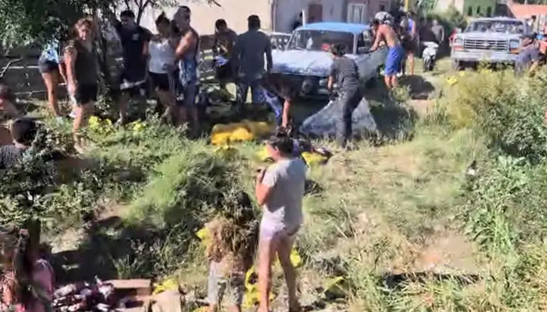 La siesta del domingo de ramos llegó con una suerte de bendición para los habitantes de la zona que se organizaron con velocidad ante el vuelco del rodado. Parejas, niños y familia enteras hicieron el mano a mano, botella por botella, para quedarse con algo de lo que había esparcido el malogrado vehículo.
