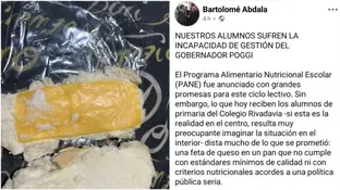 El senador nacional Bartolomé Abdala, cargó contra el Gobernador tras recibir quejas por la baja calidad nutricional de la comida que se entrega en las escuelas públicas.