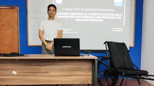 Mauro Exequiel Díaz, egresado de la carrera de Ingeniería Mecatrónica, desarrolló un dispositivo monorueda de bajo costo utilizando materiales reciclados. El prototipo fue donado a un centro turístico en El Morro.