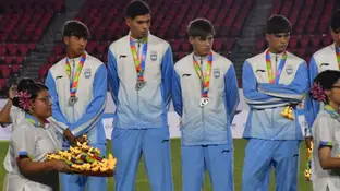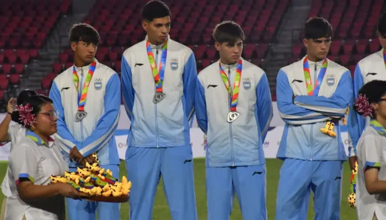 En una emotiva ceremonia de premiación -que fue el último acto del fútbol en los Juegos Suramericanos de la juventud de Panamá- el puntano Juan Aimale recibió la medalla de plata y se convirtió en el primer deportista de la provincia en recibir el galardón.