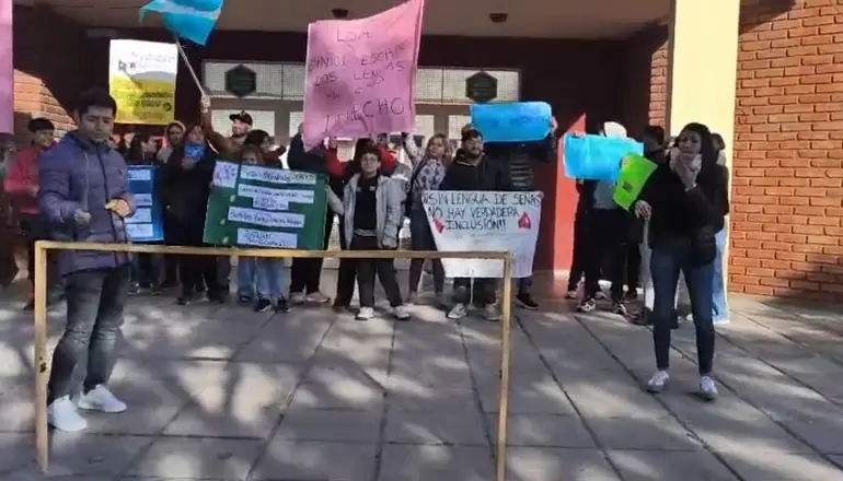 Los alumnos sordos se manifestaron pidiendo inclusión. Fue en el Centro Educativo N° 21 , en la ciudad de San Luis, Allí, funcionaba el instituto "Jean Piaget". No los atendieron.